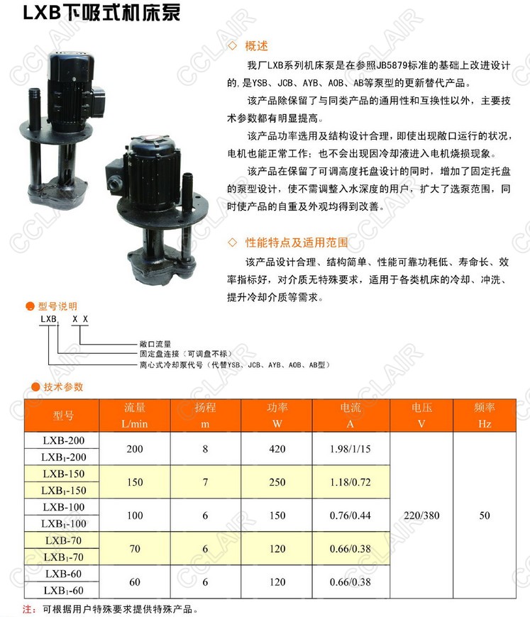LXB-200,LXB1-200,LXB-150,LXB1-150,LXB-100,LXB1-100,LXB-70,LXB1-70,LXB,下吸式機床泵 |