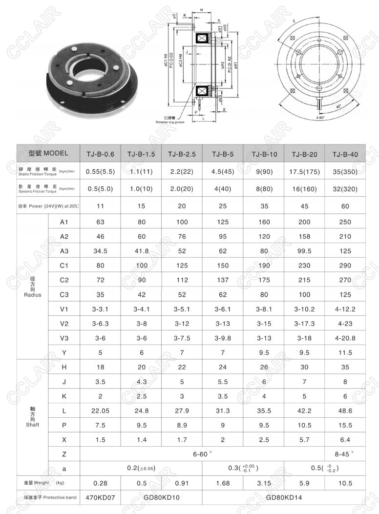 TJ-B-0.6,TJ-B-1.5,TJ-B-2.5,TJ-B-5,TJ-B-10,TJ-B-20,TJ-B-40,TJ-B,干式單板電磁剎車器
