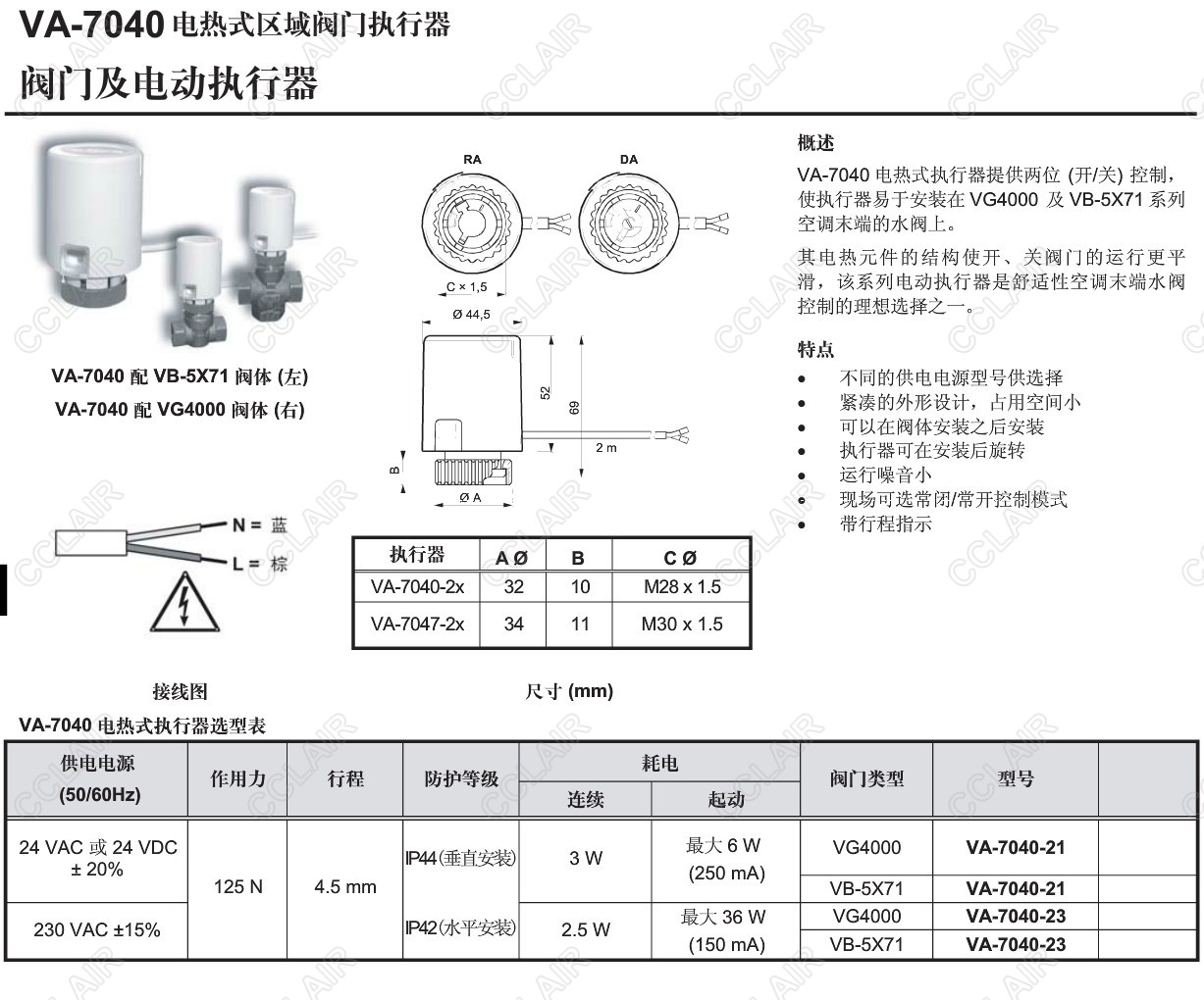 VA-7040-21,VA-7040-23,VA-7040,電熱式區(qū)域閥門執(zhí)行器