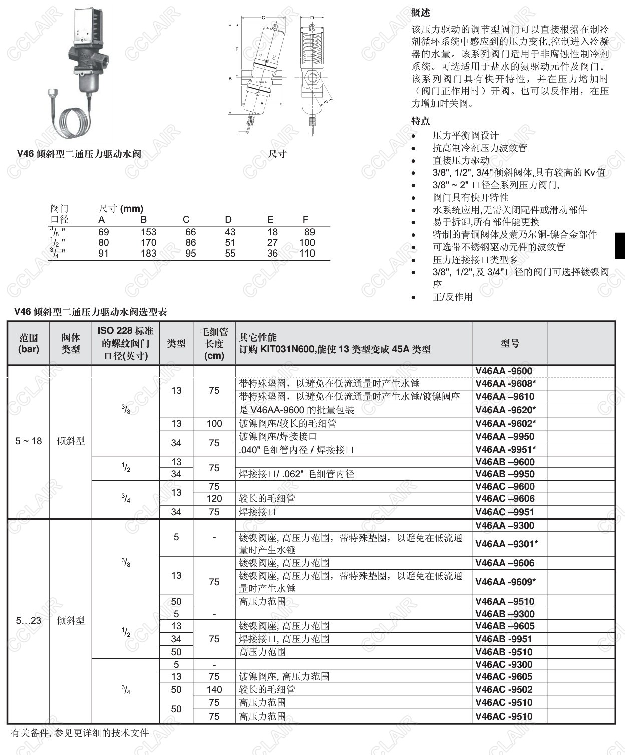 V46AA-9600,V46AA-9608,V46AA-9610,V46AA-9620,V46AA-9602,V46,二通壓力驅(qū)動(dòng)水閥傾斜型
