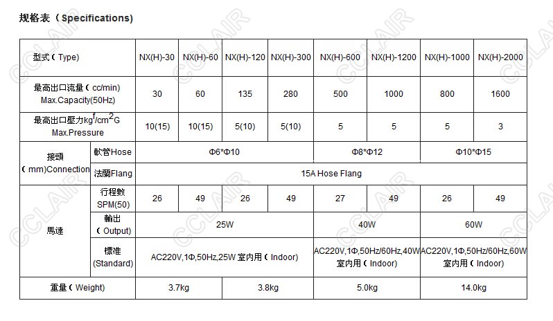 泵浦材質(zhì):C:PVC T:Teflon S:SUS316 |