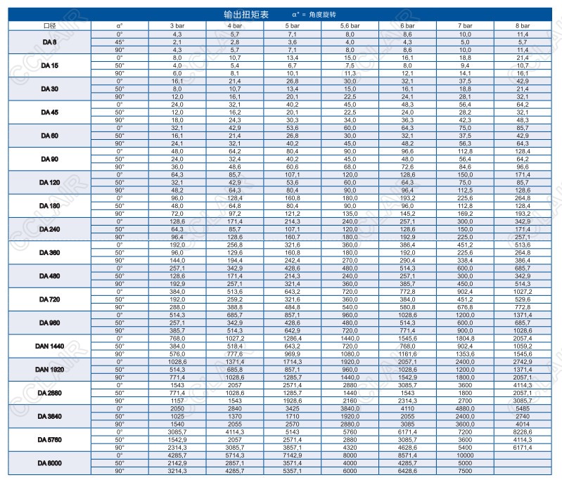 扭矩:與控制氣壓成正比。
