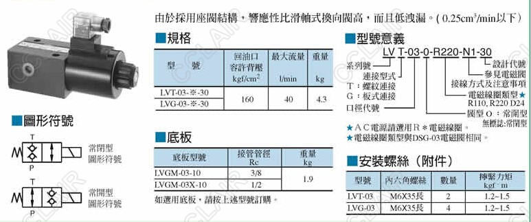 LVT-03-R220-N1-30,LVG-03-D24-N1-30,LVG-03,座閥型換向閥YUKEN