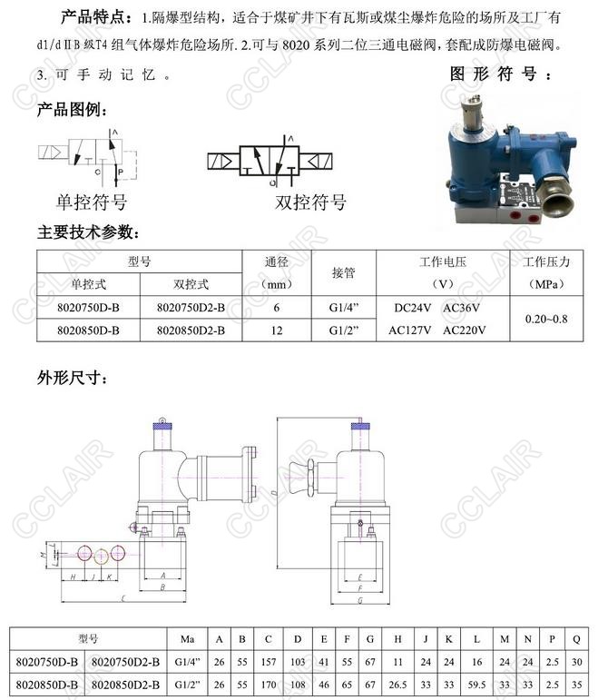 8020750D-B,8020850D-B,8020750D2-B,8020850D2-B,防爆電磁閥