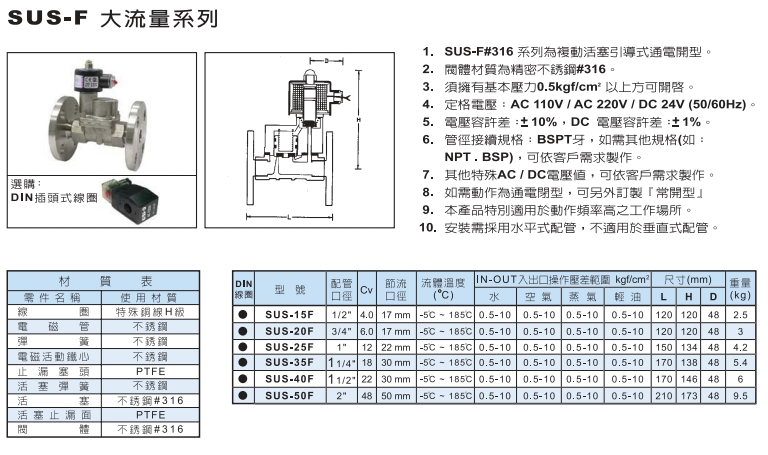 SUS-15F,SUS-20F,SUS-25F,SUS-35F,SUS-40F,SUS-50F,UNI-D大流量電磁閥