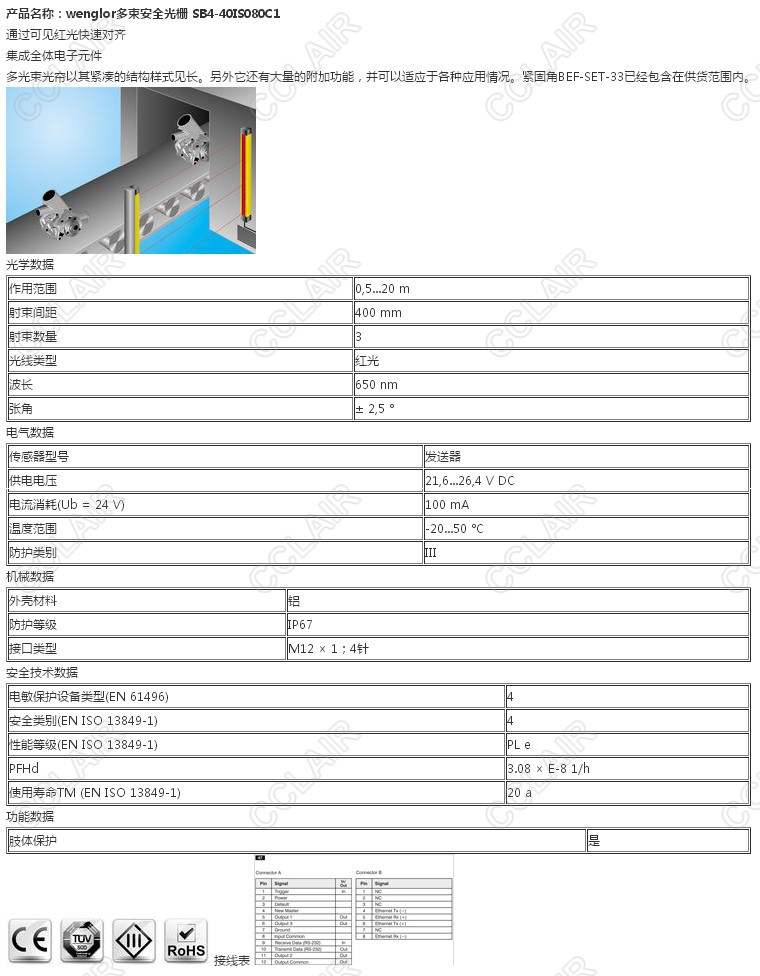 SB4-40IS080C1,wenglor多束安全光柵