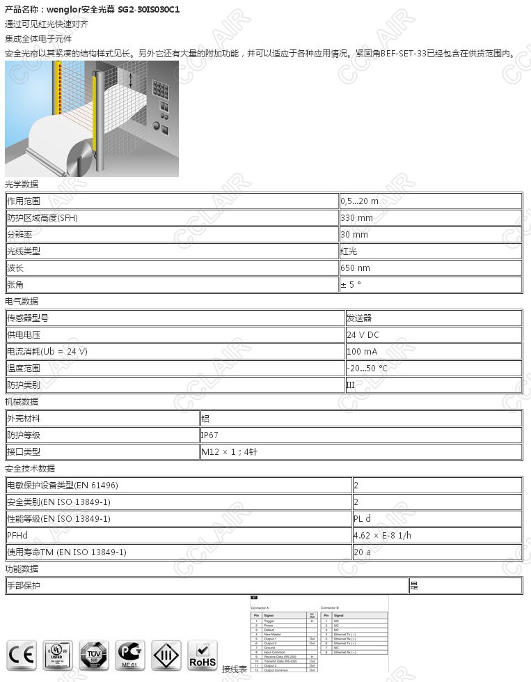SG2-30IS030C1,wenglor安全光幕