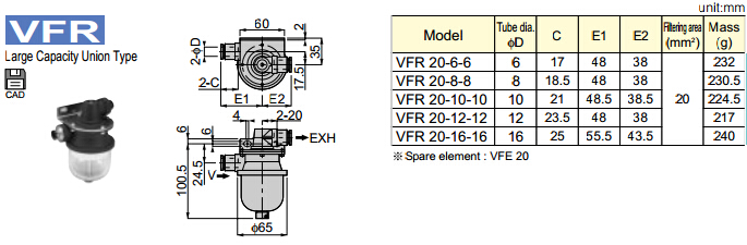 VFR20-6-6,VFR20-12-12,VFR20-16-16,VFR20-8-8,VFR20-10-10,PISCO真空過濾器