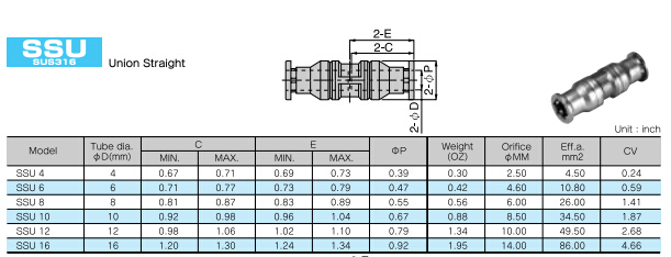 SSU4,SSU6,SSU8,SSU10,SSU12,SSU16,PISCO快速接頭