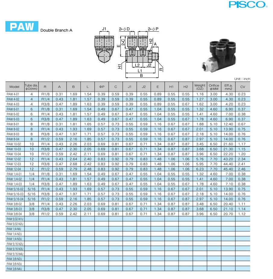 PAW5/32-N1U,PAW1/4-N2U,PAW3/8-N2U,PAW5/16-N2U,PAW5/32-N2U,PAW3/8-N4U