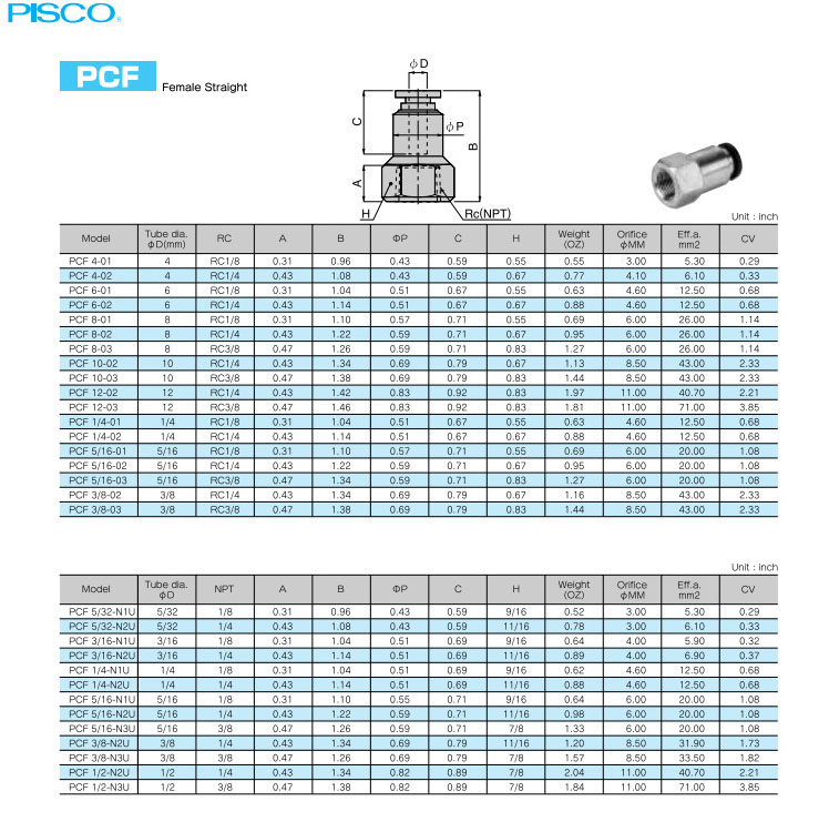 PCF5/32-N2U,PCF3/16-N2U,PCF1/4-N2U,PCF5/16-N2U,PCF5/16-N3U,PCF3/8-N3U,PCF1/2-N3U,