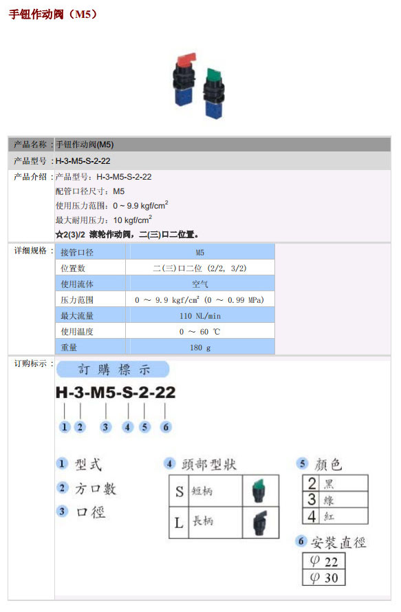 H-3-M5-S-2-22,POSU手鈕作動閥
