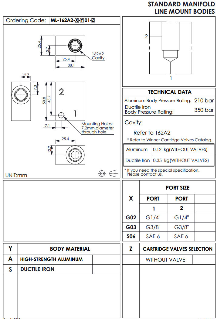 ML-162A2-G02-A01,ML-162A2-G03-A01,ML-162A2-S06-A01,winner標(biāo)準(zhǔn)配管式油路板