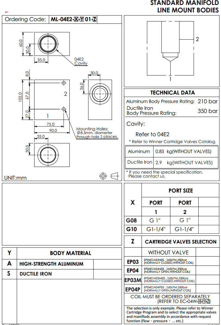 ML-04E2-G08-A01-EP03,ML-04E2-G10-A01-EP03,ML-04E2-G08-S01-EP03,ML-04E2-G10-S01-EP03,winner標(biāo)準(zhǔn)配管式油路板