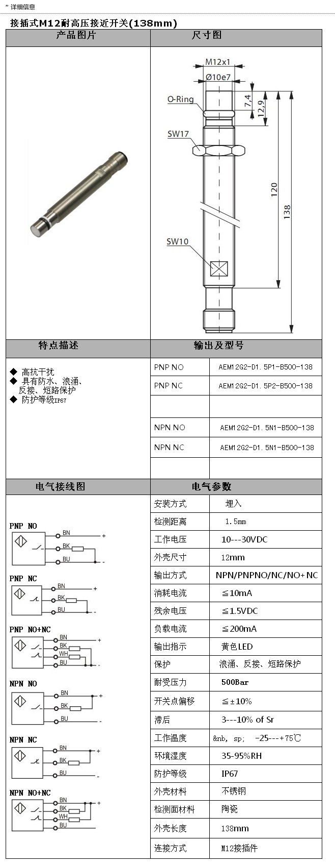 AEM12G2-D1.5P1-B500-138,AEM12G2-D1.5N1-B500-138,AEM12G2-D1.5N1-B500-138,M12接插式(138mm)