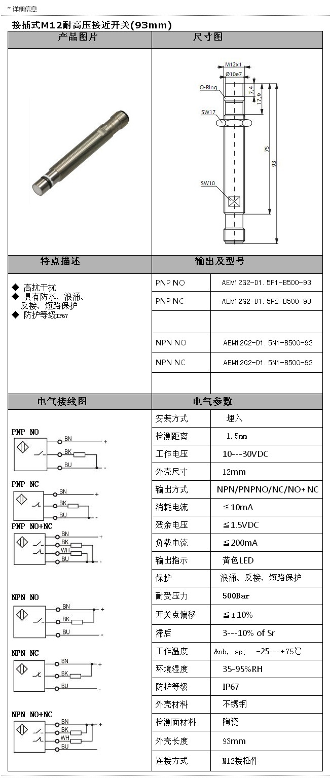AEM12G2-D1.5P1-B500-93,AEM12G2-D1.5N1-B500-93,AEM12G2-D1.5N1-B500-93,M12接插式(93mm)