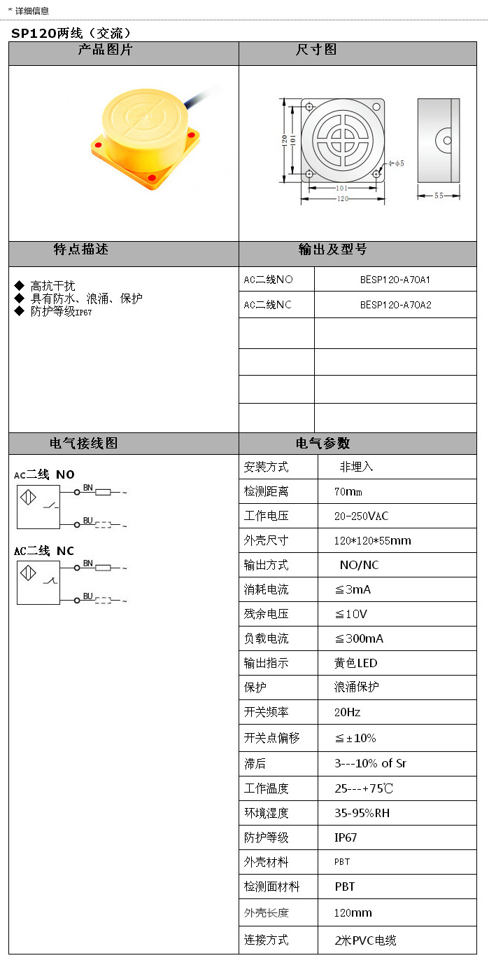 BESP120-A70A1,BESP120-A70A2,SP120交流兩線