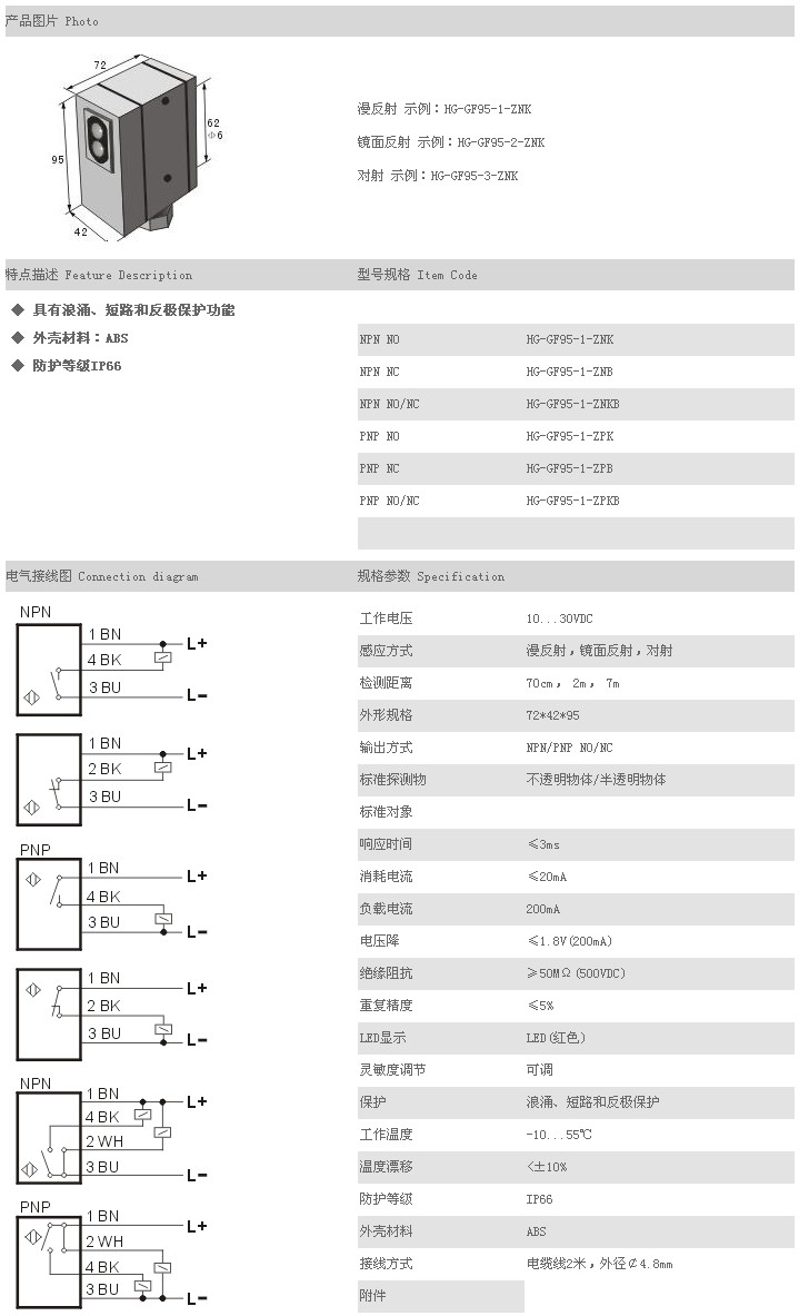 方型光電開關/傳感器 HG-GF95-1-ZNK,HG-GF95-1-ZNB,HG-GF95-1-ZNKB,HG-GF95-1-ZPK,HG-GF95-1-ZPB,HG-GF95-1-ZPKB, |