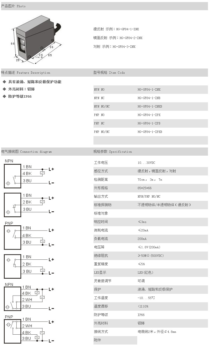 /傳感器 HG-GF84-1-ZNK,HG-GF84-1-ZNB,HG-GF84-1-ZNKB,HG-GF84-1-ZPK,HG-GF84-1-ZPB,HG-GF84-1-ZPKB,