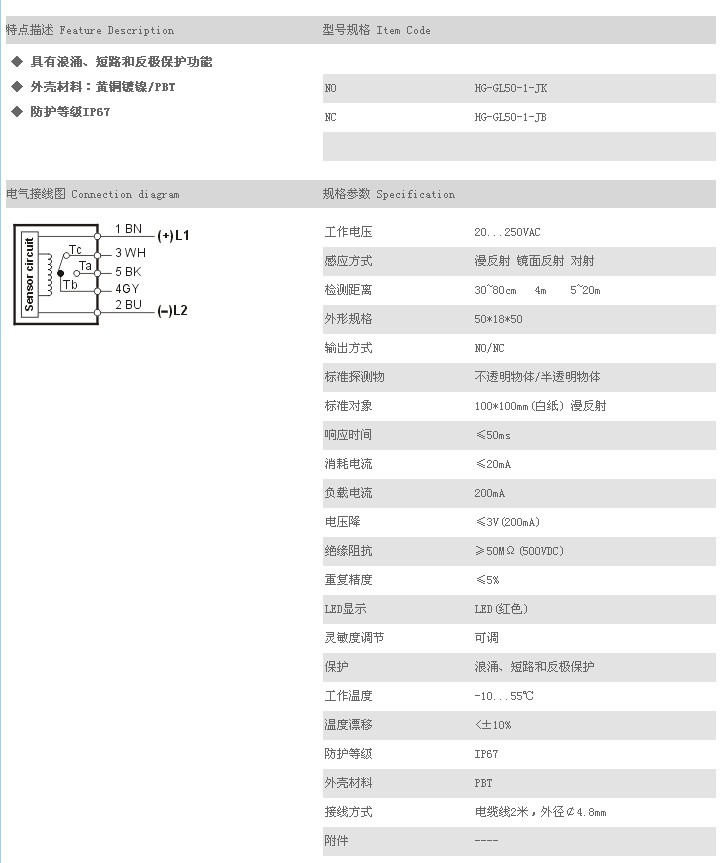 /傳感器 HG-GL50-1-JK,HG-GL50-1-JB,