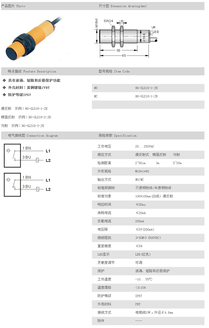/傳感器 HG-GLS18-1-JK,HG-GLS18-1-JB,HG-GLS18-2-JK,HG-GLS18-2-JB,HG-GLS18-3-JK,HG-GLS18-3-JB,