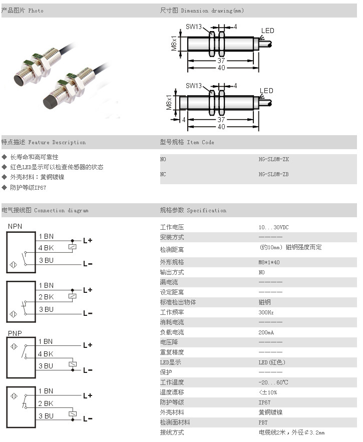 普通型磁性開關 HG-SL8M-ZK,HG-SL8M-ZB,