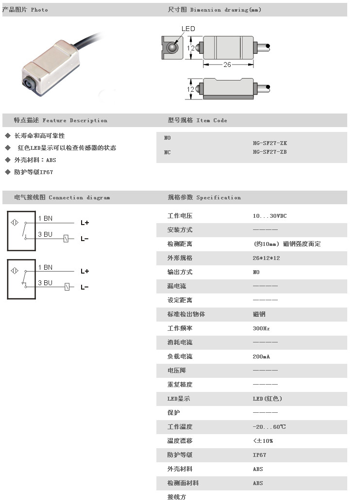 普通型磁性開關(guān) HG-SF27-ZK,HG-SF27-ZB,