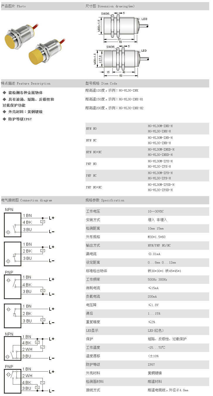 耐高溫接近開關(guān)(低溫) HG-WL30M-ZNK-H,HG-WL30-ZNK-H,HG-WL30M-ZNB-H,HG-WL30-ZNB-H,HG-WL30M-ZNKB-H,HG-WL30-ZNKB-H,HG-WL30M-ZPK-H,HG-WL30-ZPK-H,HG-WL30M-ZPB-H,HG-WL30-ZPB-H,HG-WL30M-ZPKB-H,HG-WL30-ZPKB-H,