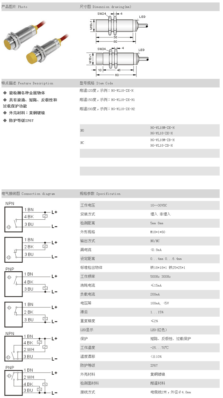 耐高溫接近開關(guān)(低溫) HG-WL18M-ZK-H,HG-WL18-ZK-H,HG-WL18M-ZB-H,HG-WL18-ZB-H,