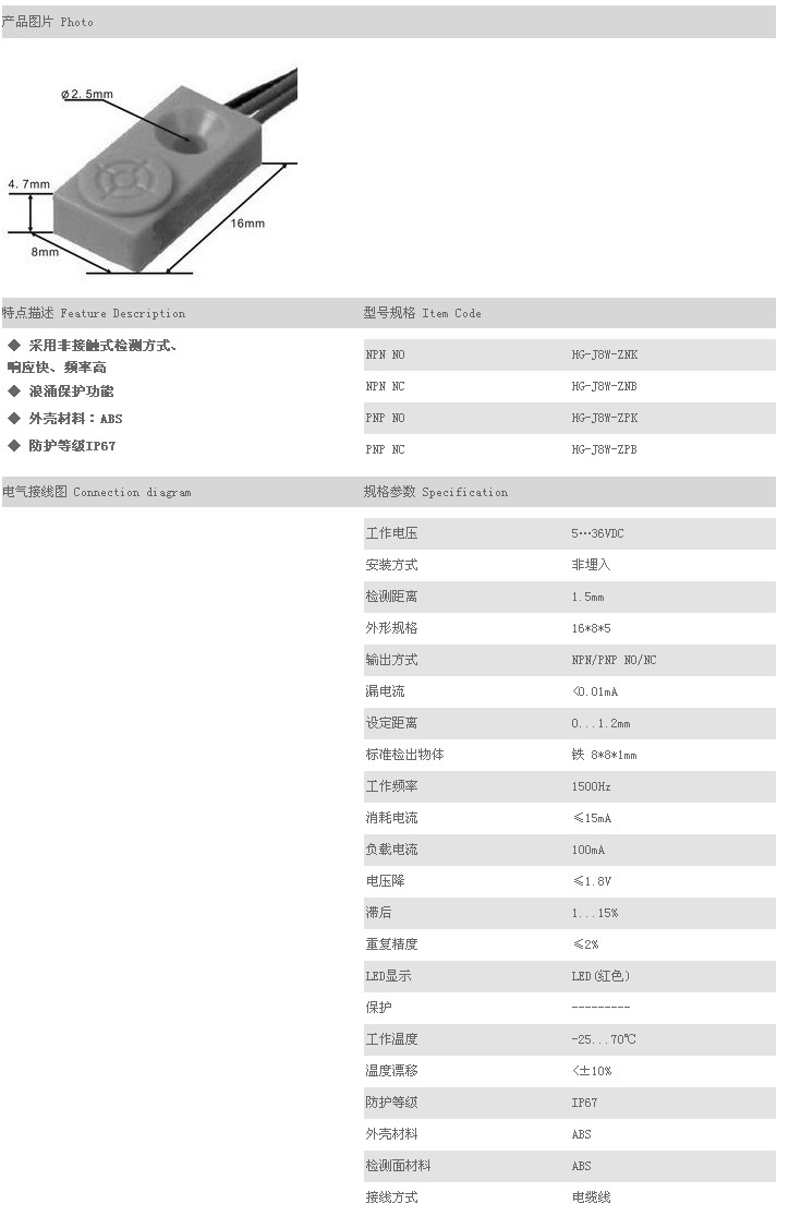 超小型接近開關(guān) HG-J8W-ZNK,HG-J8W-ZNB,HG-J8W-ZPK,HG-J8W-ZPB,