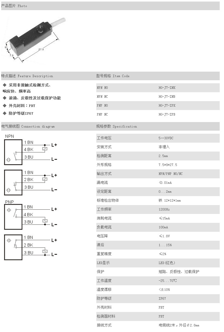 超小型接近開(kāi)關(guān) HG-J7-ZNK,HG-J7-ZNB,HG-J7-ZPK,HG-J7-ZPB,