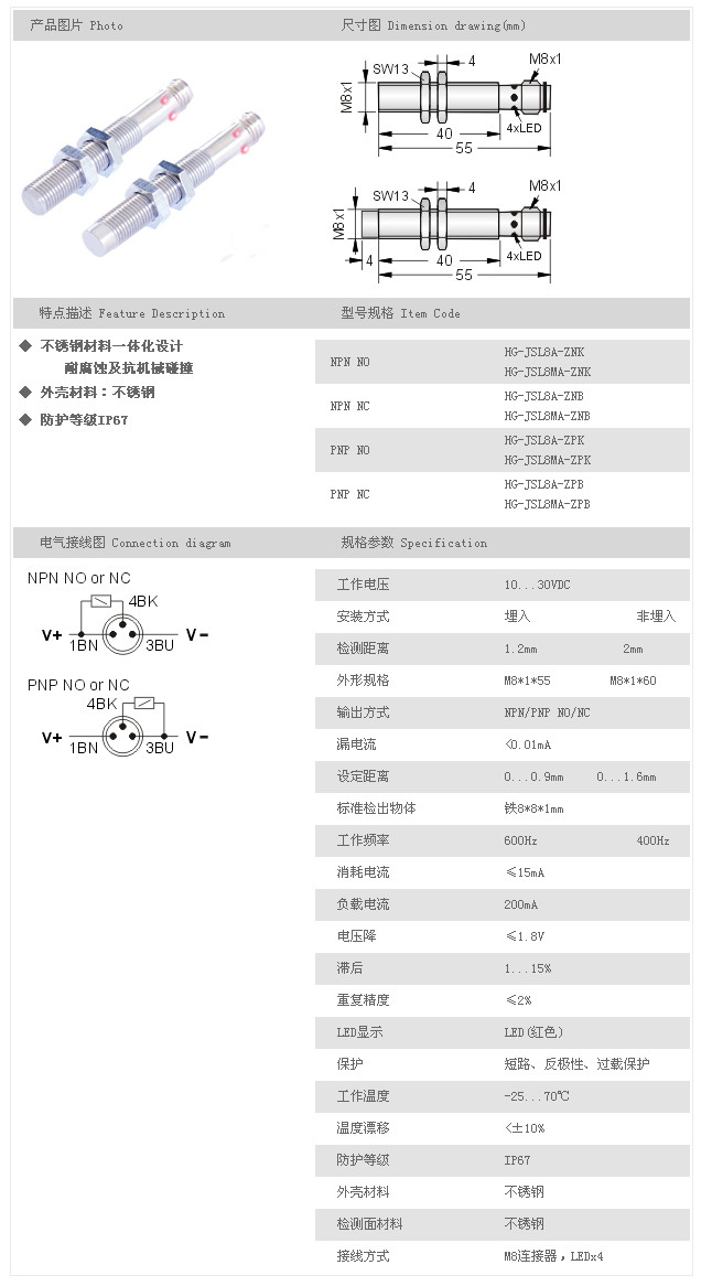 金屬探頭型接近開(kāi)關(guān) HG-JSL8A-ZNK,HG-JSL8MA-ZNK,HG-JSL8A-ZNB,HG-JSL8MA-ZNB,HG-JSL8A-ZPK,HG-JSL8MA-ZPK,HG-JSL8A-