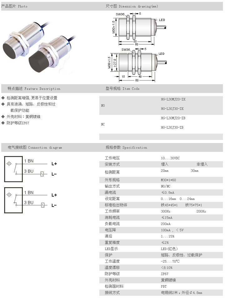 遠(yuǎn)距離型接近開關(guān) HG-L30MJ20-ZK,HG-L30J30-ZK,HG-L30MJ20-ZB,HG-L30J30-ZB,