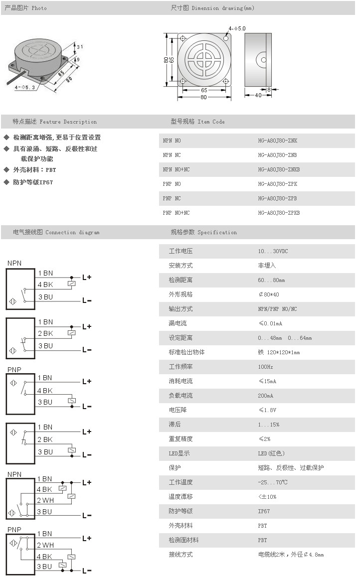 遠距離型接近開關(guān) HG-A80J80-ZNK,HG-A80J80-ZNB,HG-A80J80-ZNKB,HG-A80J80-ZPK,HG-A80J80-ZPB,HG-A80J80-ZPKB, |