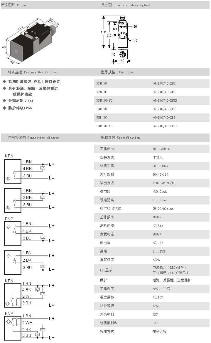 遠距離型接近開關(guān) HG-Z40J40-ZNK,HG-Z40J40-ZNB,HG-Z40J40-ZNKB,HG-Z40J40-ZPK,HG-Z40J40-ZPB,HG-Z40J40-ZPKB |