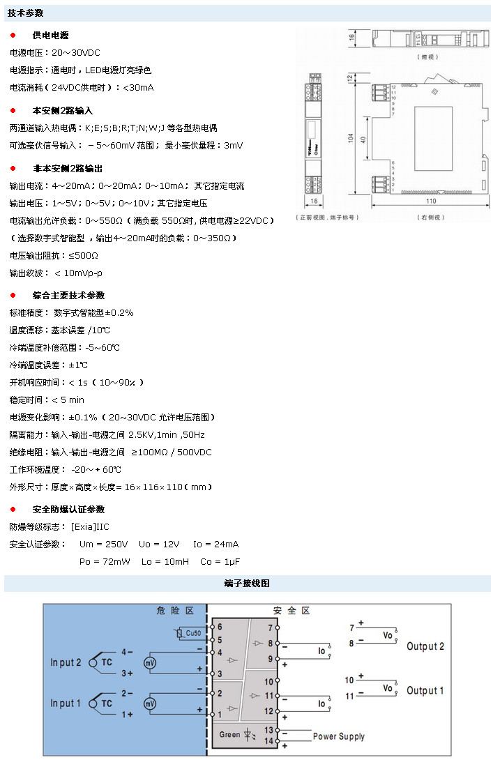 數(shù)字智能型:K、E、S、B溫度量程范圍可自由設(shè)定 |