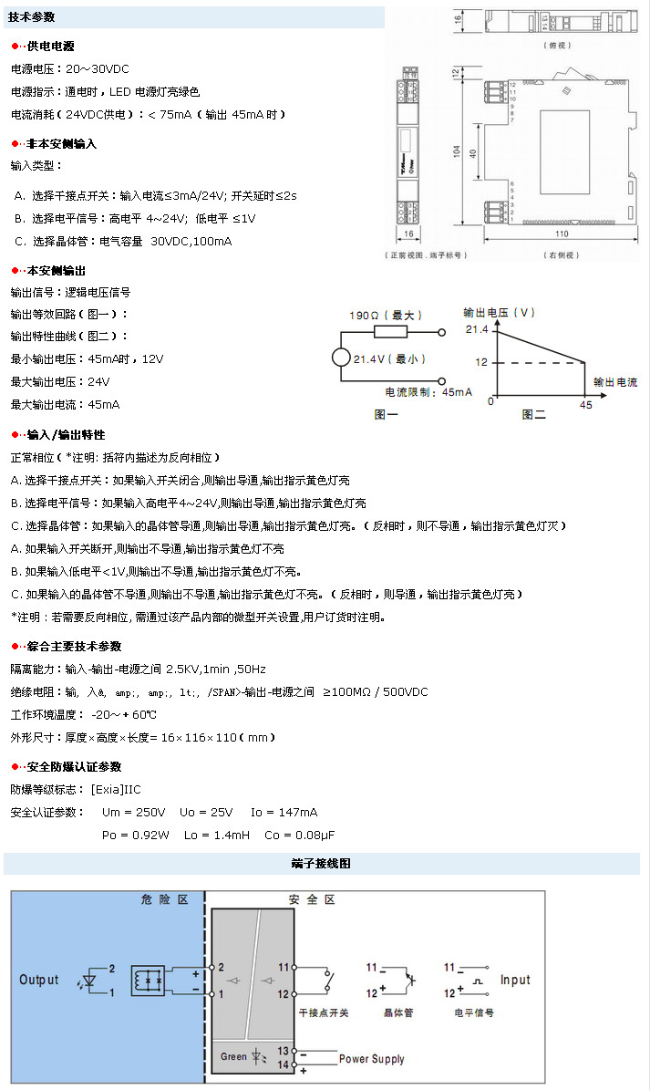 邏輯電壓:12V<Vo<21.4V 最大輸出電流:45 mA |