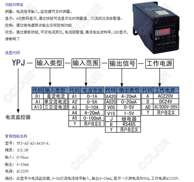 YPJ-DI-A3-A420-A,YPJ-AI-A1-V05-AD,YPJ-AI3-A2-J-D,YPJ-DI-A5-V15-AD,YPJ,電流監(jiān)控器
