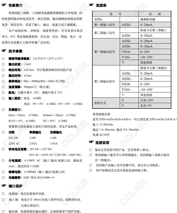 XPD-A420-A420-A420-A,XPD-A420-2A420-A,XPD-A420-A420-A420-D,XPD-A420-2A420-D,XPD,隔離配電器