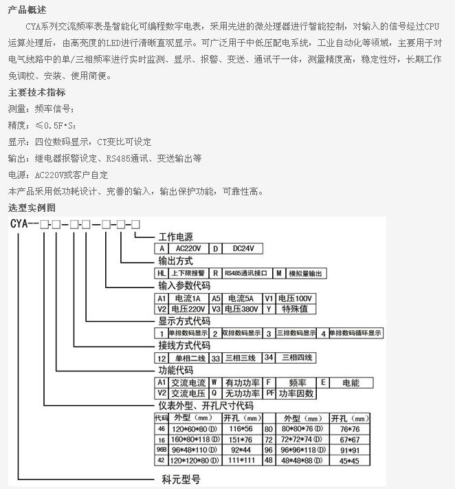 CYA-46-F,CYA-16-F,CYA-96B-F,CYA-42-F,CYA-80-F,CYA-72-F,CYA-96-F,CYA-48-F,CYA,交流頻率表