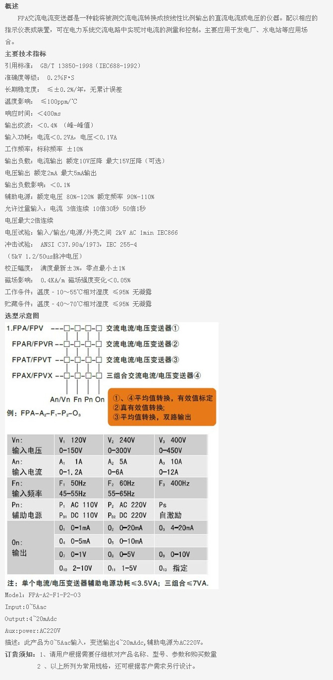型號: FPA-A1,FPA-A2,FPA-A3,FPA-A1-F2-PD1-O2,FPA-A3-F1-PS-O3,FPA-A2-F1-P2-O3,FPA,交流電流變送器