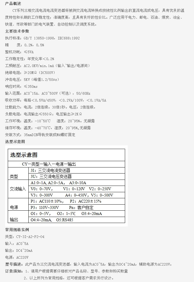 CY-3I-A1-P1-O1,CY-3I-A2-P1-O2,CY-3I-A3-P1-O4,CY-3I-A2-P2-O4,CY,三相交流變送器
