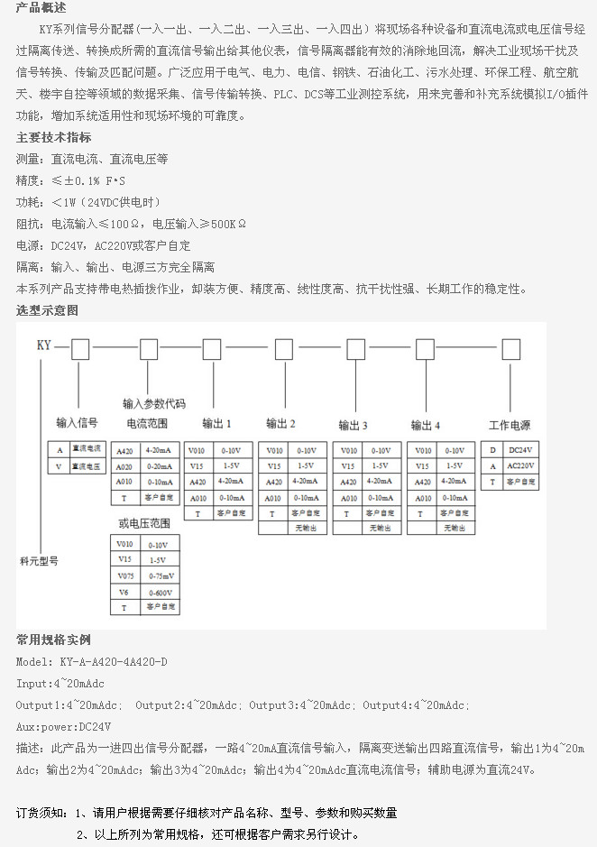 KY-A-A420-4A420-D,KY,信號(hào)分配器