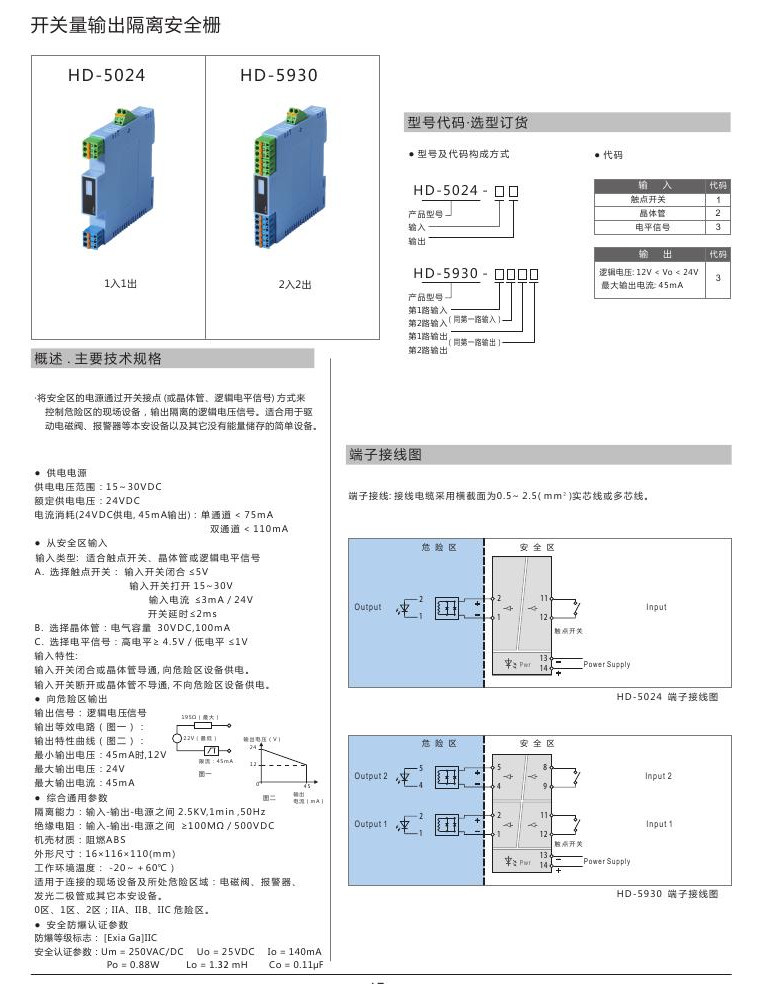 HD-5024,HD-5930,開關(guān)量輸入隔離安全柵