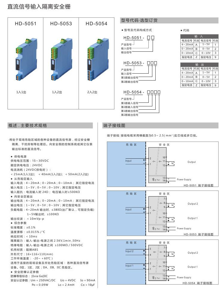 HD-5051,HD-5053,HD-5054,直流信號輸入隔離安全柵