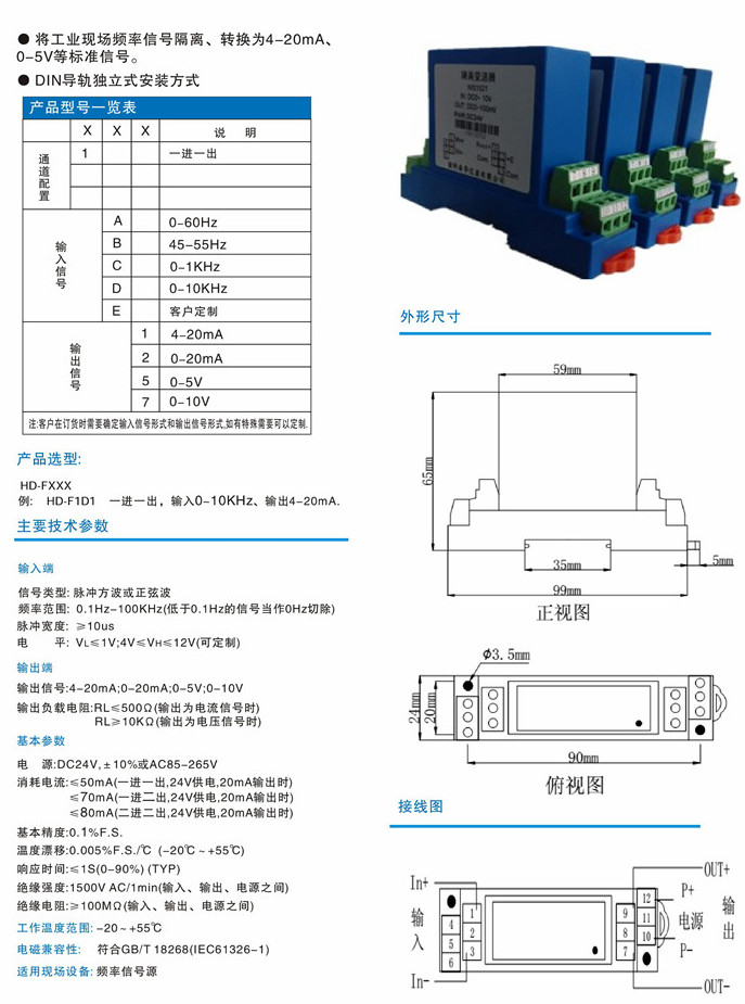 HD-F1A1,HD-F1A2,HD-F1A5,HD-F1A7,HD-F1B1,HD-F1E2,HD-F1E5,HD-F1E7,HD-F,頻率信號(hào)隔離器