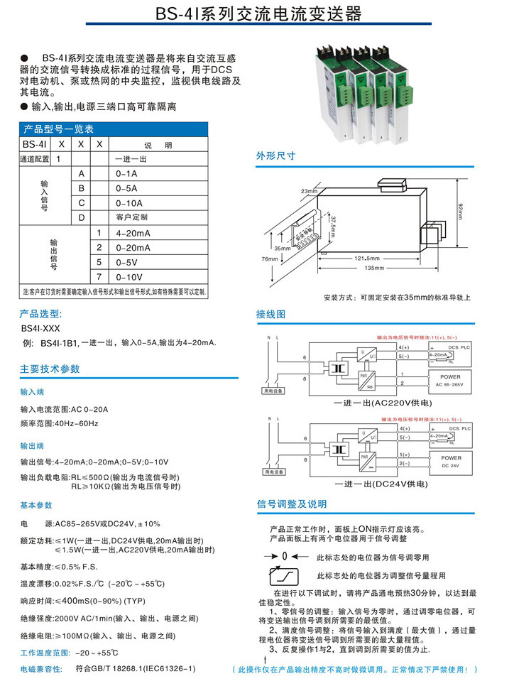 BS4I-1A1,BS4I-1A7,BS4I-1B2,BS4I-1B5,BS4I-1C5,BS4I-1D5,BS4I-1D7,BS-4I,交流電流變送器