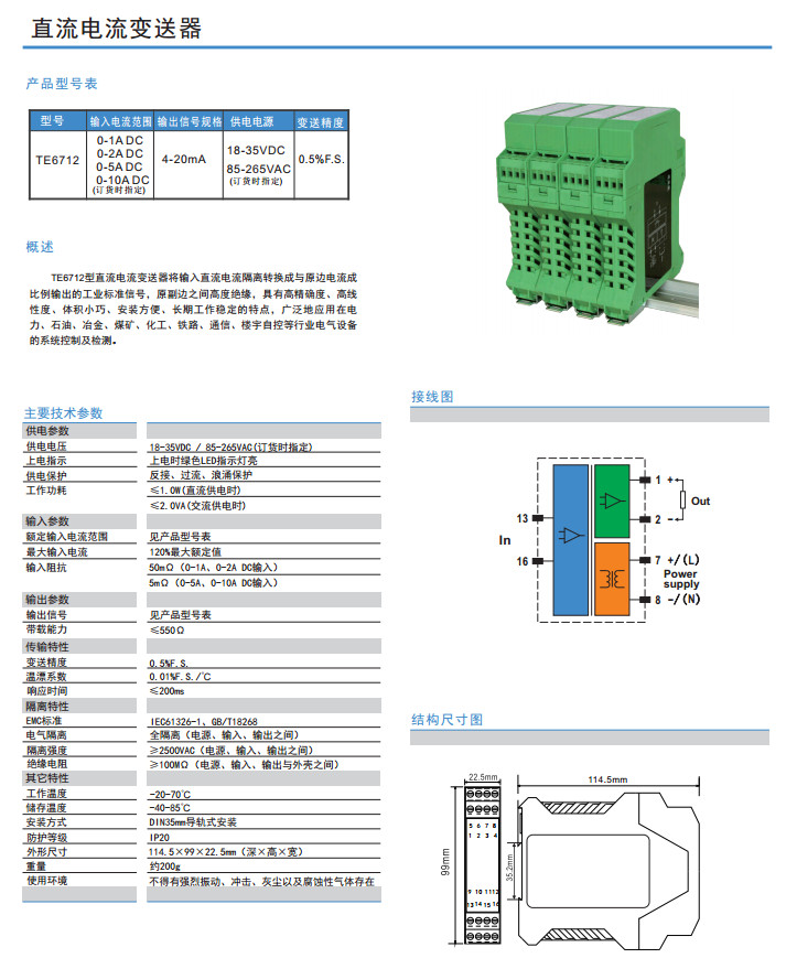TE6712,直流電流變送器