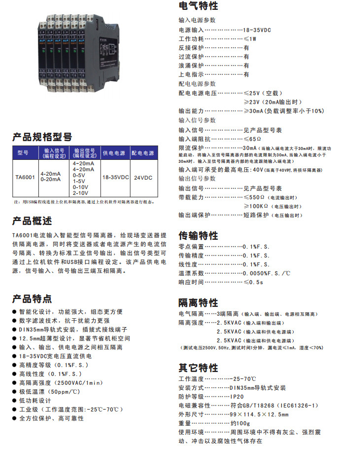 TA6001,電流輸入智能型信號(hào)隔離器
