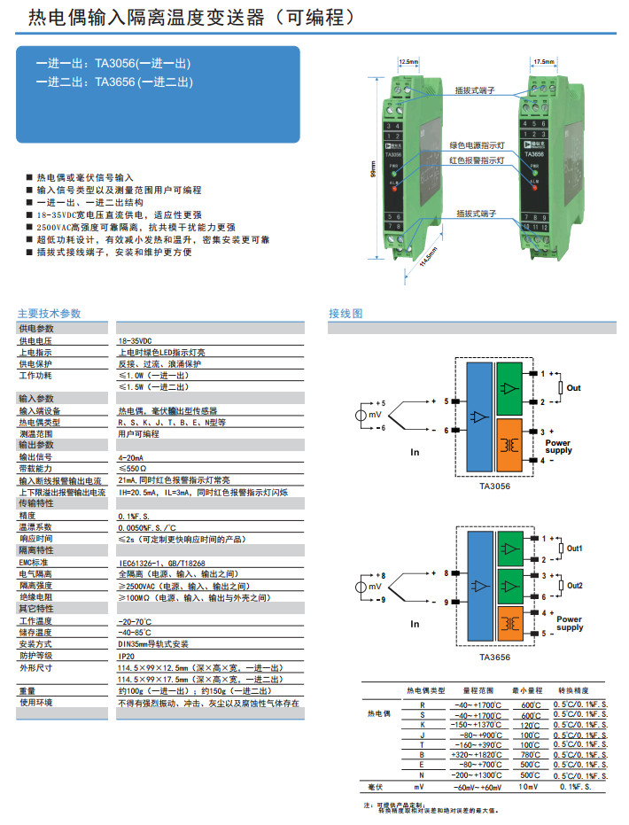 TA3056,TA3656,熱電阻輸入隔離溫度變送器(可編程)